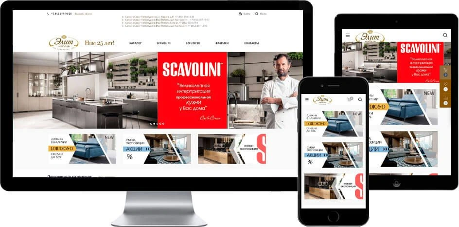 Компания «Элит-Мебель» уже более 25 лет занимается продажей элитной итальянской мебели и имеет четыре интерьерных шоу-рума в разных районах Санкт-Петербурга. В магазине представлены готовые интерьерные решения от ведущих итальянских брендов Scavolini, Loiudiced, Angelo Cappellini, Caroti, Cavio Casa и др. В наличии и под заказ кухни, гостиные, спальни, диваны, системы хранения и детская мебель.