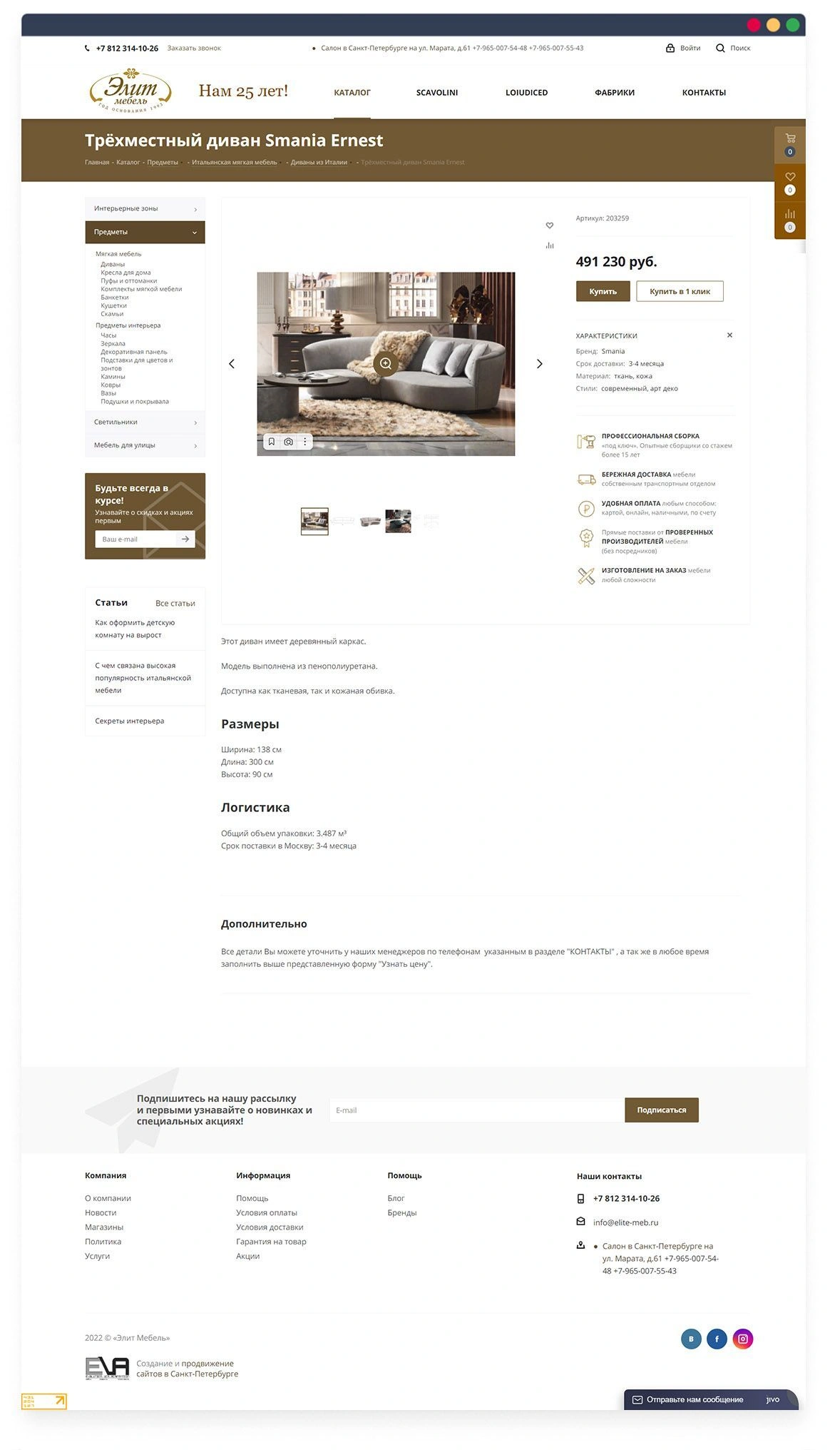 Цель: Создание интернет-магазина элитной мебели с индивидуальным дизайном и удобной навигацией. Сделать сайт конкурентоспособным, улучшить репутацию и продающие качества, повысить трафик и конверсию, вывести позиции по ключевым конкурентным запросам в ТОП 10, приумножить количество заказов и продаж.
