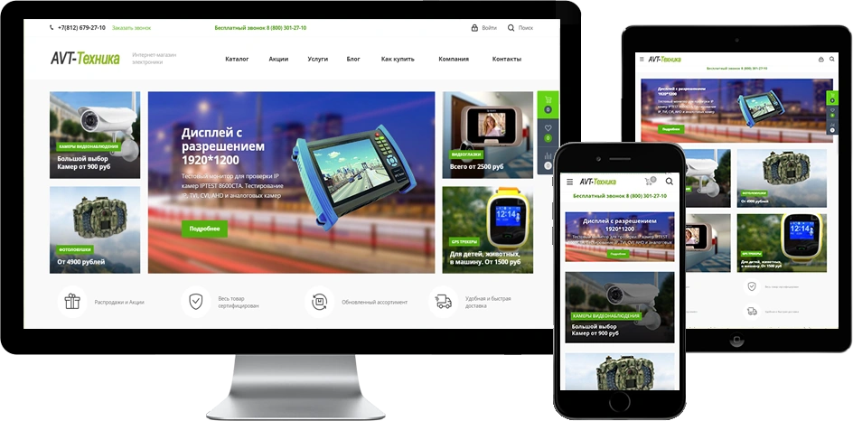 Компания «AVT-техника» занимается продажей электроники с 1997 года. Она уже имела интернет-магазин, но с крайне низкими позициями и трафиком. Мы провели комплексный аудит и выявили факторы, которые негативно влияли на трафик. За 2 недели мы полностью изменили дизайн, внедрили новый функционал, микроразметку и исправили все ошибки внутренней оптимизации, дублей, оптимизировали код и скорость загрузки страниц, сделали выгрузку в Яндекс.Маркет. Уже за первые месяцы трафик и видимость сайта выросли на 30%. Но мы продолжили работы и в результате вывели интернет-магазин в ТОП, обеспечив стабильный поток заявок.