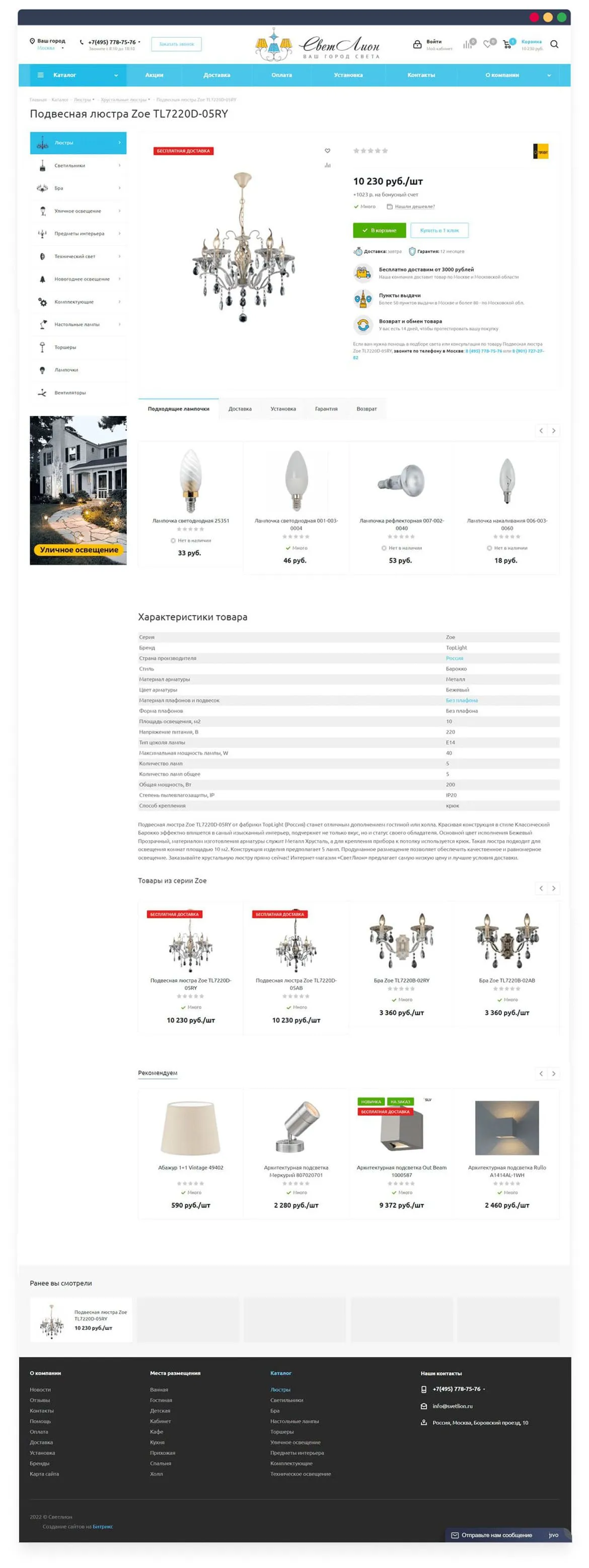 «СветЛион» — интернет-магазин осветительного оборудования. На сайте представлено более 50 000 наименований продукции от более 80 брендов. В каталоге товаров можно найти люстры, светильники, прожекторы, настольные лампы, зеркала с подсветкой и многое другое. Продажа осуществляется не только по Москве, но и в другие регионы. Сайт ориентирован на частных лиц, дизайнеров и строительные компании.